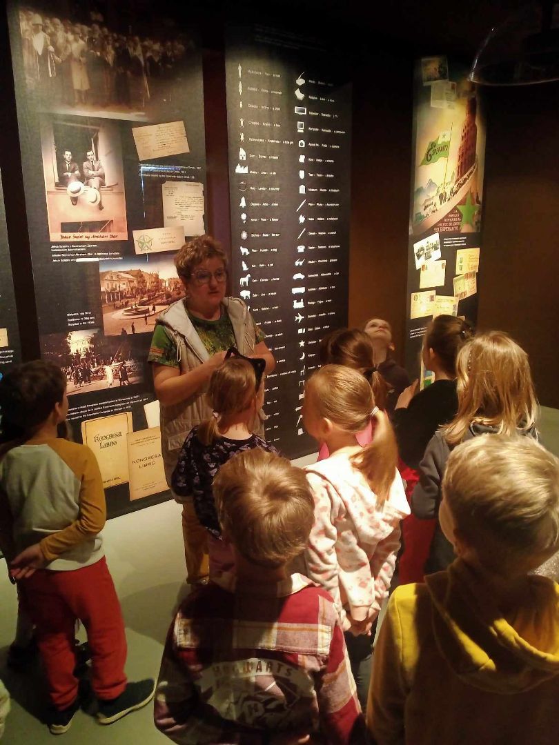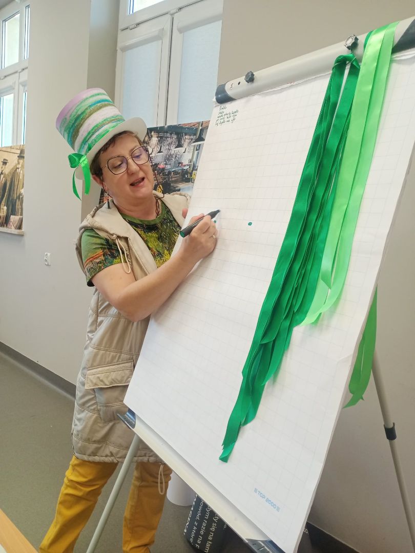 Dzieci z grupy VI wzięły udział w zajęciach edukacyjnych, podczas których poznały postać Ludwika Zamenhofa – twórcy międzynarodowego języka esperanto. Zwiedziły wystawę „Białystok młodego Zamenhofa”, która przybliżyła im dawny Białystok oraz pokazała jak wyglądało kiedyś nasze miasto. Dzieci dowiedziały się również, że w mieście rozwijał się kiedyś przemysł, działało wiele fabryk, produkowano też piękne kapelusze, które noszone są do dziś. Podczas warsztatów przedszkolaki wykonały kolorowe kapelusze (capelo) ucząc się przy okazji nowych słów w języku esperanto. Miały również możliwość utkania chodniczka z kolorowych materiałów. Było to bardzo pouczające spotkanie, które wzbogaciło wiedzę dzieci o ciekawostki związane z miastem Białystok, a piękne, własnoręcznie zrobione kapelusze włożone na głowy towarzyszyły nam w drodze do przedszkola wzbudzając podziw i zachwyt przechodniów. (MD)