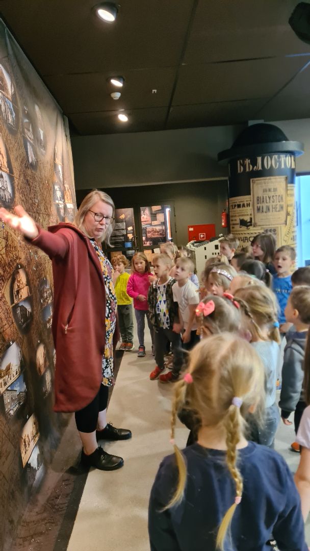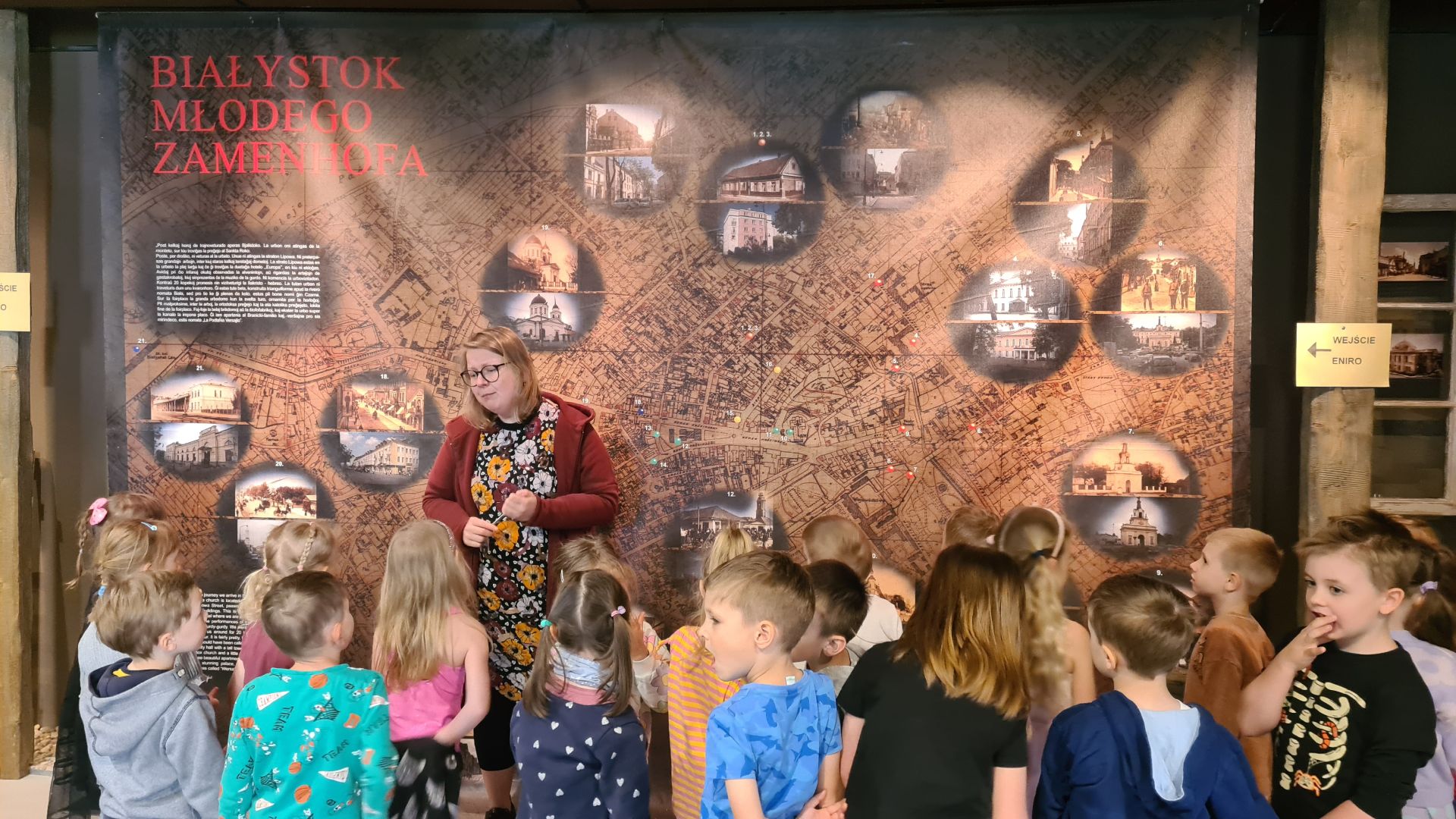 09.05.2024r. (czwartek) Grupa V wybrała się do Centrum Zamenhofa aby poznać postać znanego w świecie białostoczanina Ludwika, jego życiorys, rodzinę oraz dorosłe życie. Przedszkolaki mogły obejrzeć wystawę a następnie uczestniczyły w warsztatach plastycznych. Dzieci wykonały postaci, które następnie wykorzystały w odgrywanych scenkach dramowych. "Liski" zostały podzielone na cztery zespoły, które przygotowały krótkie przedstawienia w których przewijała się postać małego Ludwika. Zajęcia edukacyjne w Centrum Zamenhofa były bardzo ciekawe, odwiedzimy je na pewno w przyszłym roku szkolnym.