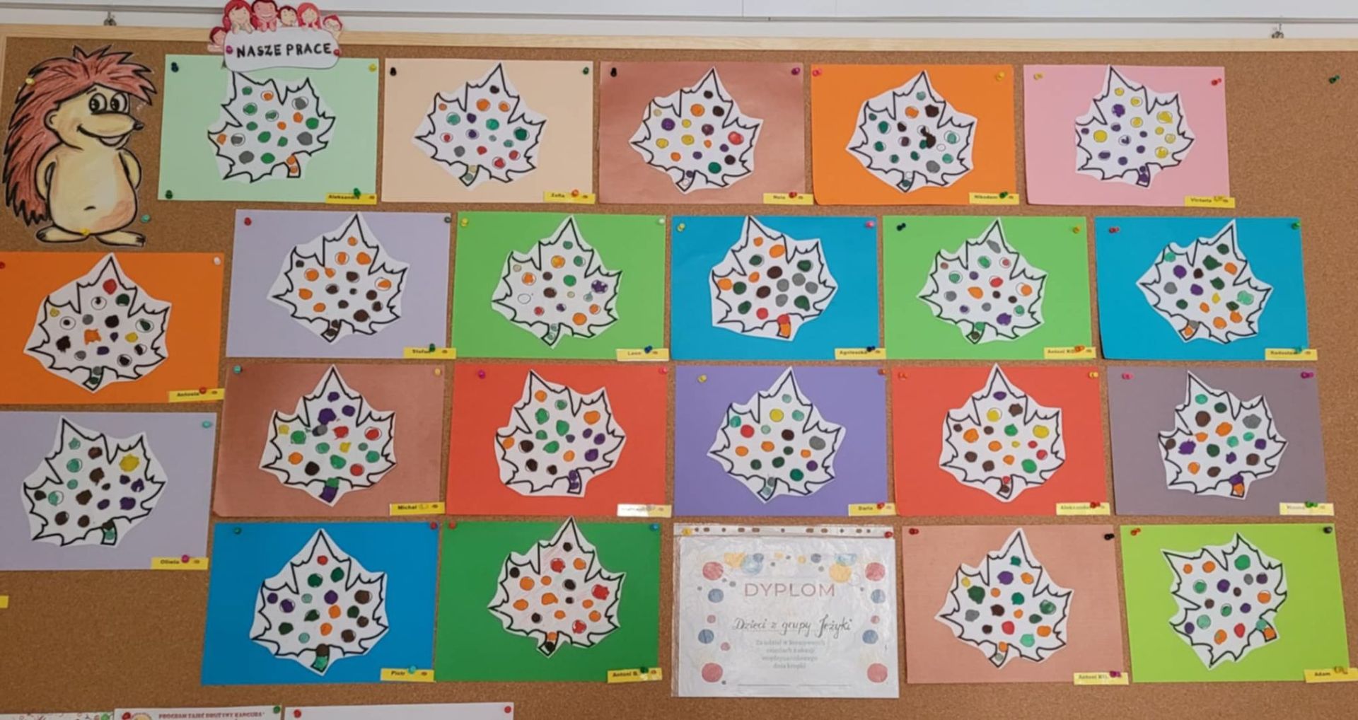 Na zakończenie dnia każda grupa przygotowała „kropkową galerię”, w której można było podziwiać prace pełne barw, pomysłów i dziecięcej wyobraźni.