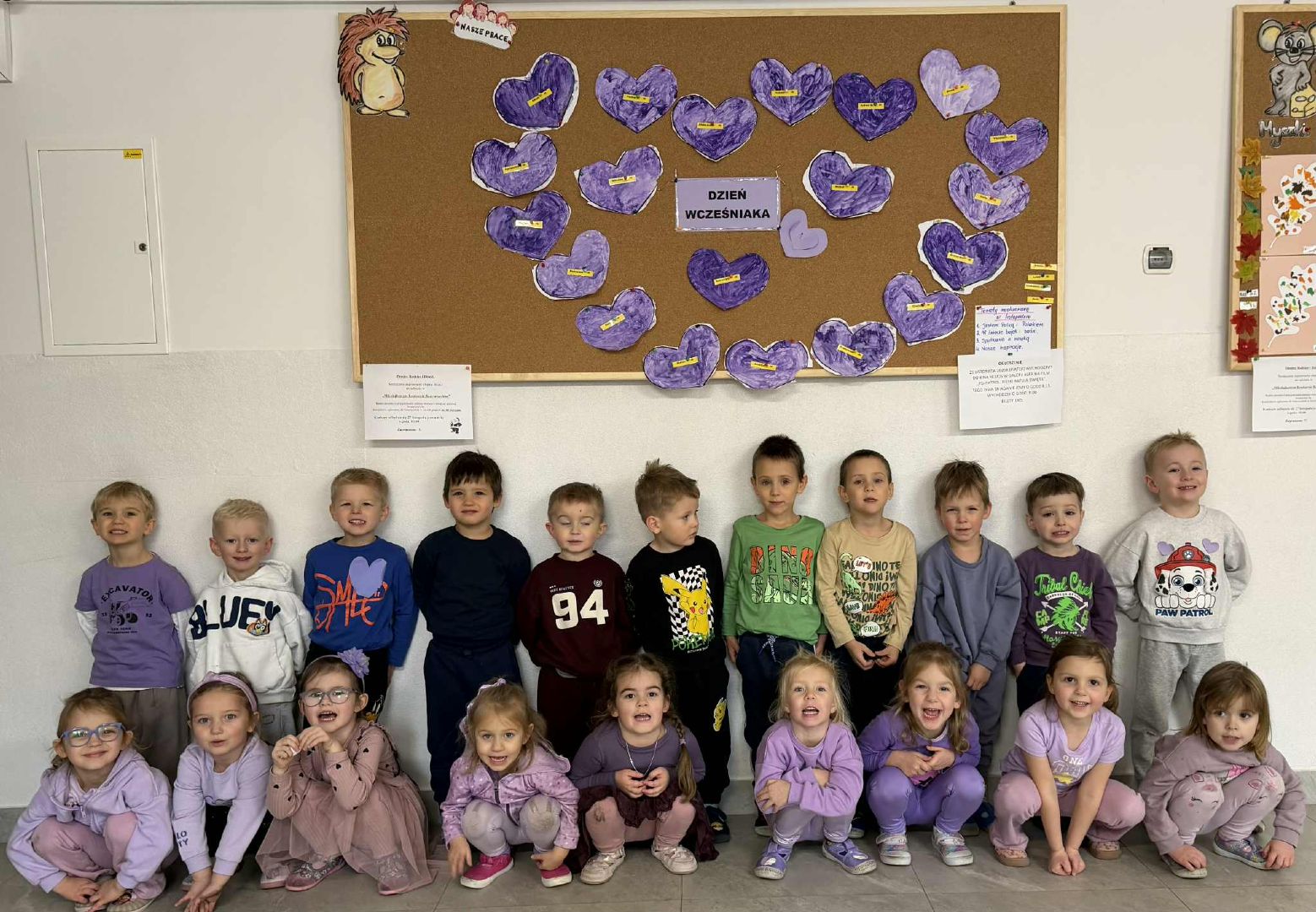 20 listopada obchodziliśmy w naszym przedszkolu Światowy Dzień Praw Dziecka oraz Dzień Wcześniaka. Podczas krótkich rozmów, zabaw i zajęć dydaktycznych dzieci poznawały swoje najważniejsze prawa – do miłości, opieki, zabawy, bezpieczeństwa i nauki. Przedszkolaki dowiedziały się, że każde dziecko jest wyjątkowe i ma takie same prawa, niezależnie od miejsca, z którego pochodzi. To był dzień pełen uśmiechu i wspólnej refleksji nad ważnymi wartościami. Przedszkolaki z zaangażowaniem wykonywały różnorodne prace plastyczne – kolorowały, wycinały, tworzyły własne symbole związane z obchodzonymi świętami. W salach panowała radosna atmosfera, pełna ciekawości i dobrego humoru.