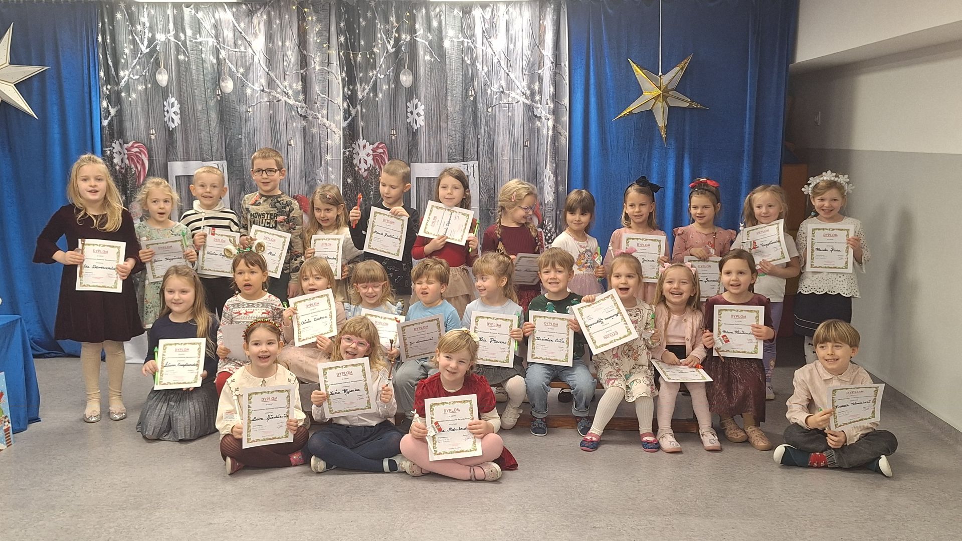 Tradycyjnie pod koniec listopada w naszym przedszkolu ma miejsce miejsce Mikołajkowy Konkurs Recytatorski - tym razem to już XXIII edycja konkursu. Nadrzędnym celem przeprowadzenia konkursu jest popularyzacja literatury dziecięcej wśród dzieci, rozwijanie kultury słowa, wspieranie uzdolnień i pomoc w rozwijaniu zainteresowań i zdolności recytatorskich. W konkursie wzięło udział ponad 30 uczestników, z których każde dziecko zaprezentowało bardzo dobry poziom artystyczny. Stroje i dekoracje zapierały dech w piersiach, a interpretacje wierszy były tak zimowe i świąteczne, że można było poczuć zbliżającą się magię świąt. Wszystkie dzieci otrzymały pamiątkowe dyplomy i drobne upominki. Jury wyróżniło trójkę laureatów: Franka i Laurę z grupy Lisków oraz Jasia z grupy Myszek, którzy wystąpią na Mikołajkowej Gali Przedszkolaka w MDK w Białymstoku. Wszytskim serdecznie gratulujemy i życzymy wielu sukcesów.