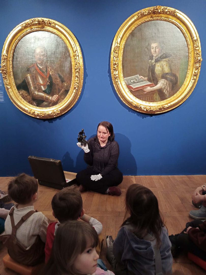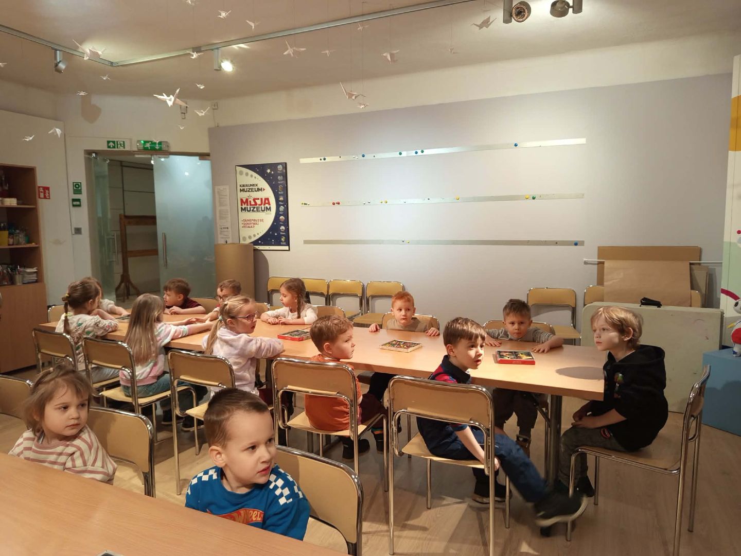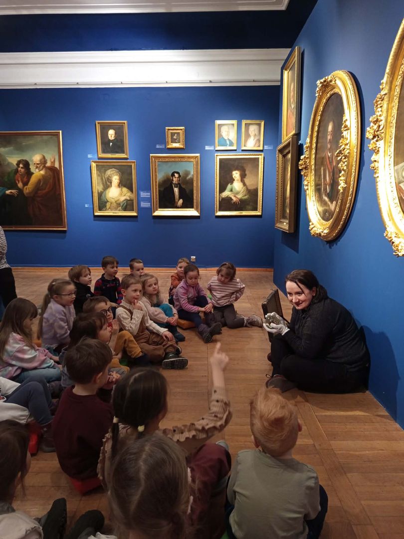 Grupa III Wiewiórki po raz pierwszy odwiedziła białostocki Ratusz i uczestniczyła w zajęciach interaktywnych. Dzieci zostały przyjęte przez sympatyczna Panią Anię, która przypomniała dzieciom co to jest muzeum i czym się zajmuje oraz zapoznała z wystawa stała malarstwa polskiego. Dzieci mogły obejrzeć wartościowe przedmioty, znajdujące się w muzealnych zbiorach. W części warsztatowej kolorowały suchymi pastelami historyczne osoby np. Stanisława Augusta Poniatowskiego - króla Polski. Następną wizytę pt. "Kolorowy świat" zaplanowaliśmy na kwiecień 2026r.(A.S.)