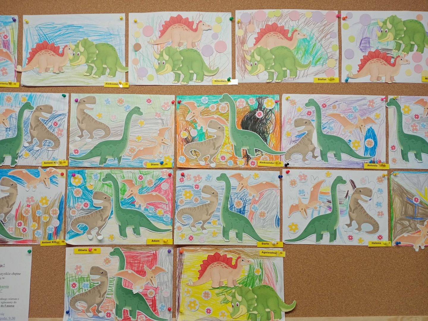 Dinozaury to stworzenia, które fascynują szczególnie najmłodszych. Nie tylko zaskakują swoim wyglądem i wielkością, ale też kryją wiele tajemnic. Przedszkolaki bardzo fascynuje świat tych wymarłych gadów. Dlatego właśnie 26 lutego w Dzień Dinozaura przedszkole otworzyło swoje progi dla wszelkiego rodzaju dinozaurów, dinusiów :-) W tym dniu przedszkolaki poznały historię dinozaurów, dowiedziały się m.in. kiedy żyły, czym się żywiły oraz jak wyglądały,z jakiego powodu wyginęły, a także poznały zawód paleontologa. W każdej grupie znalazł się dziecięcy ekspert, który znał ciekawostki o dinozaurach i chętnie dzielił się wiedzą z innymi. Dzieci przeliczały, klasyfikowały oraz rysowały i kolorowały dinozaury. W salach powstały "dinozaurowe kąciki" i powstało wiele prac plastycznych z dinozaurami w roli głównej. Wiele emocji wywołała zabawa pt. „ Podążamy śladami dinozaurów”, dzięki której udało nam się wytropić diplodoka, który pojawił się w niejednej sali. Dzięki niemu mogliśmy chociaż na chwilę przenieść się w tajemniczy świat tych prehistorycznych stworzeń. (BK)