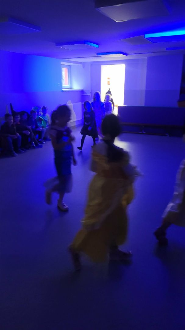 Dnia 10 kwietnia w naszej grupie obchodziliśmy wyjątkowe święto – Dzień Postaci z Bajek. Tego dnia dzieci przyszły przebrane za swoich ulubionych bohaterów bajkowych. W sali można było spotkać księżniczki, rycerzy, superbohaterów oraz wiele innych znanych i lubianych postaci.Obchody rozpoczęliśmy od wspólnych rozmów na temat ulubionych bajek oraz bohaterów. Dzieci chętnie opowiadały o swoich przebraniach i przygodach postaci, które przedstawiały. Następnie wzięliśmy udział w zabawach ruchowych, pantomimicznych, konkursach oraz zagadkach związanych z bajkami.Nie zabrakło również wspólnego czytania fragmentów znanych bajek oraz oglądania ilustracji. Dzieci wykazały się dużą wiedzą i zaangażowaniem. Dużo radości sprawiły także tańce przy muzyce oraz wspólne zdjęcia w bajkowej scenerii.Dzień upłynął w radosnej i pełnej uśmiechu atmosferze, dostarczając dzieciom wielu niezapomnianych wrażeń. To był naprawdę magiczny dzień!