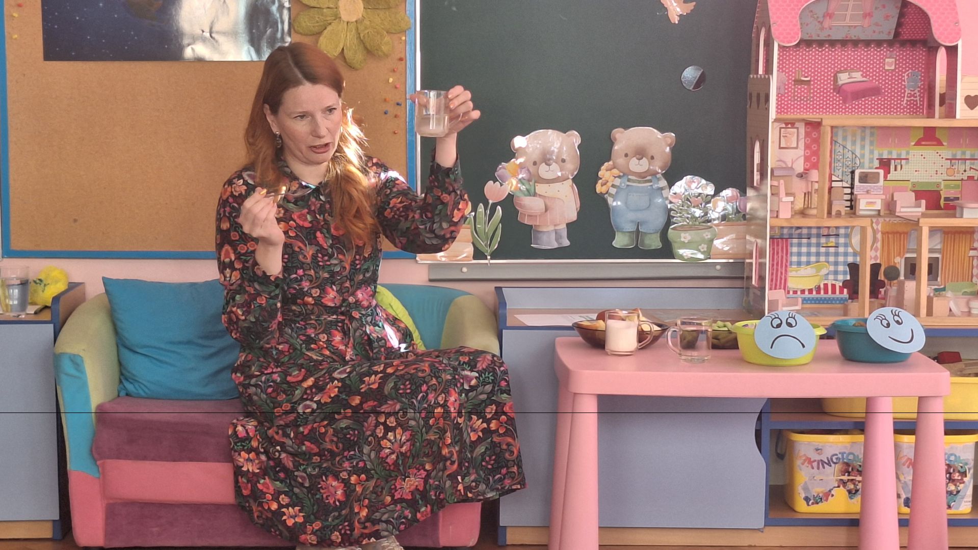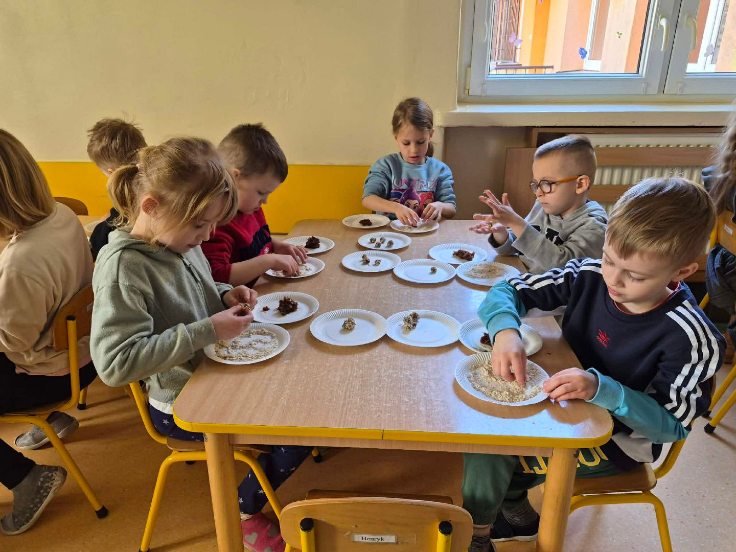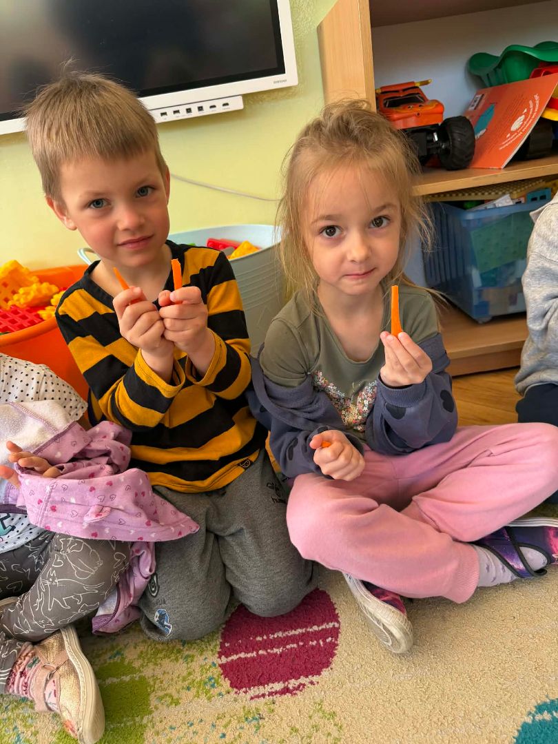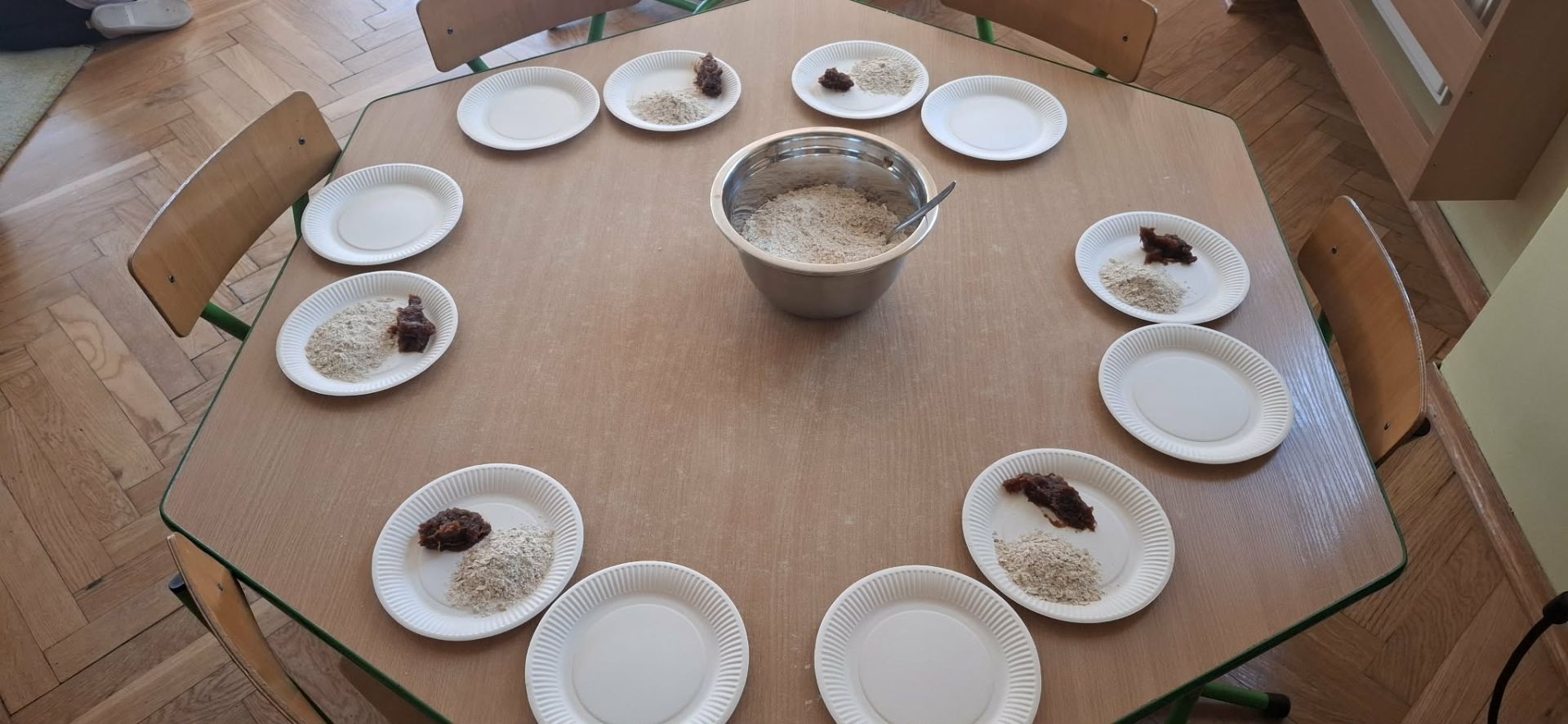 Pani Aneta Gmińska, trenerka zdrowia i ekspert żywienia i suplementacji odwiedziła nasze przedszkole by wraz z przedszkolakami rozprawić się z nadmiarem cukru spożywanym przez dzieci. W zabawy i przystępny sposób przedstawiła dzieciom cukier jako "tanie paliwo", które daje nagły skok energii, po którym dość szybko następuje gwałtowny spadek - czyli rozdrażnienie, brak skupienia i tzw. "mgła mózgowa". Pokazała ile cukru znajduje się w zwykłym soczku czy owocowym jogurcie oraz jak zamienić "cukrowego pstonika" w "paliwo mocy" czyli alternatywne zamienniki cukru np. zamiast ciastek - garść orzechów a zamiast soków i napojów w kartonikach - wodę z miętą, plasterkiem ogórka czy cytryny. Dzieci z zapałem chrupały jabłka, marchewkę i plasterki ogórka jako zdrowe przekąski a starsze przedszkolaki samodzielnie przygotowały zdrowy deser - kulki mocy.