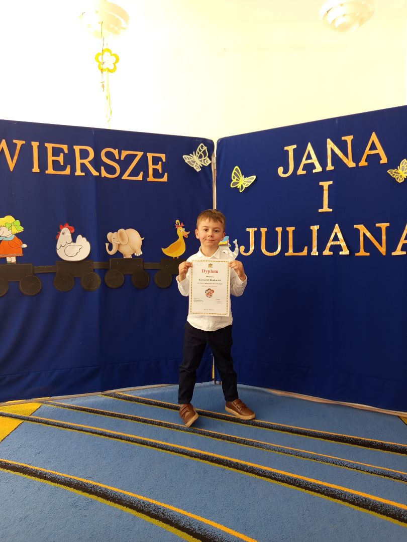 27 kwietnia Krzyś z grupy III Wiewiórki uczestniczył w Konkursie recytatorskim pt.„Wiersze Jana i Juliana” w PS Nr 46. Wystąpił z recytacja wiersza Juliana Tuwima pt.„ Okulary”. Gratulujemy. (A.SZ.)