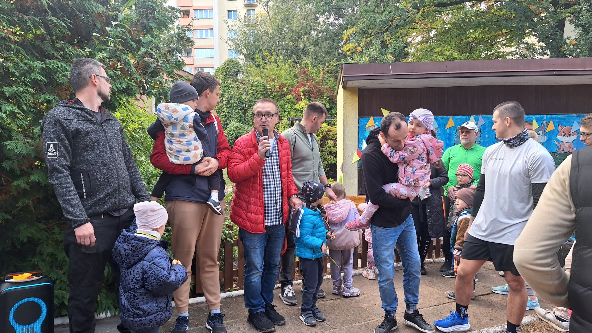 Dzięki inicjatywie naszych rodziców i Stowarzyszenia na Rzecz Edukacji i Rozwoju odbył się Rodzinny Festyn Sportowy. Wydarzenie to było doskonałą okazją do integracji całej społeczności przedszkolnej, promowania aktywności fizycznej, kształtowania zdrowych nawyków i rozwijania umiejętności ruchowych u dzieci. Było więc rodzinnie, sportowo,  edukacyjnie i smacznie a to za sprawą samodzielnie przygotowywanych przez dzieci i dorosłych zdrowych sałatek owocowo-warzywnych oraz  szaszłyków owocowych. Skoro to był Rodzinny Festyn Sportowy  - rozpoczął się od wspólnej rozgrzewki prowadzonej przez pana Tomasza z Przedszkoliady. Po rozgrzewce chętni zawodnicy wzięli udział w różnorodnych zabawach sportowych ucząc się przy tym współpracy, przezwyciężania trudności i radości z ruchu. Dzieci wraz z rodzicem pokonywali wspólnie tor przeszkód, slalom z szarfą, bieg na barana oraz strzelanie do bramki :-) Każde dziecko na koniec konkurencji sportowych otrzymało pamiątkowy medal a wszyscy wielkie brawa. Po wysiłku fizycznym przyszła pora na samodzielnie przygotowany posiłek czyli „sąsiedzki stół”. Był też przepyszny bigos przygotowany przez panie kucharki oraz gorąca herbata i woda z cytryną dla spragnionych. Inauguracyjnym punktem festynu było uroczyste otwarcie ogródka przedszkolnego wykonanego przez ojców z „Klubu Tatusia”. Przedstawiciele grup samodzielnie posadzili cebulki tulipanów i krokusów by wiosną radowały swoimi kolorami zarówno dzieci jak i rodziców i panie .