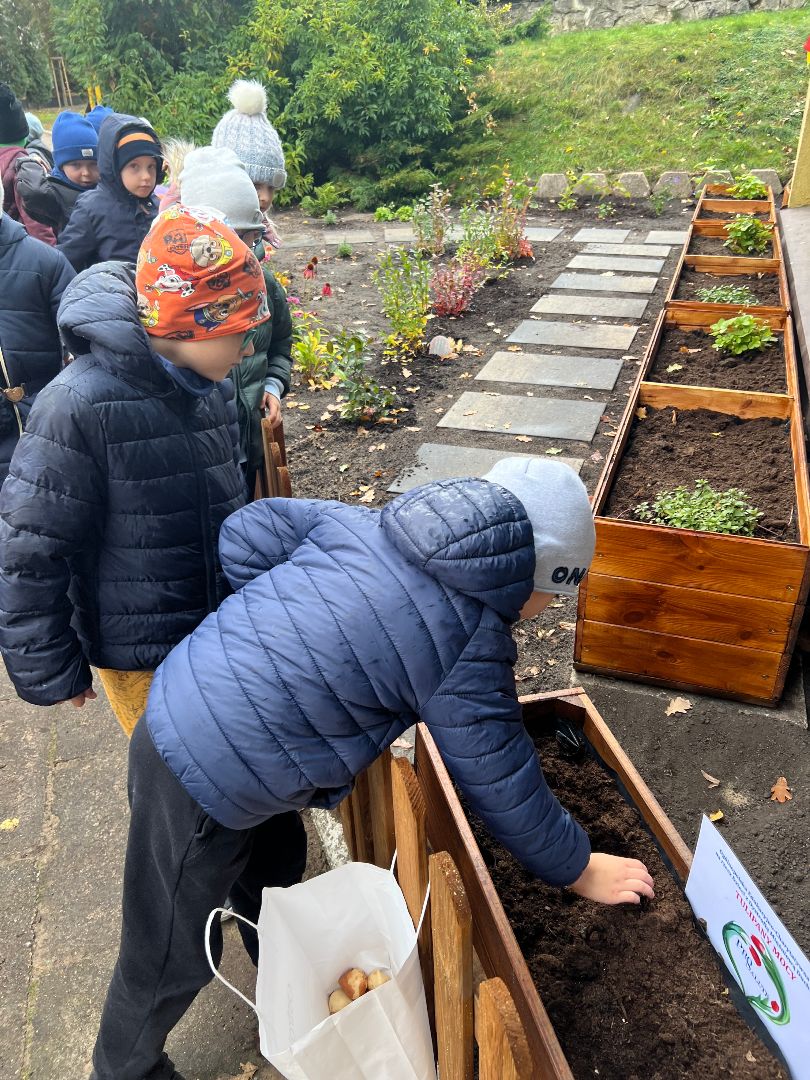 Nasze przedszkole przystąpiło do Ogólnopolskiej Edukacyjno-Charytatywnej Akcji na rzecz Dzieci z Dystrofią Mięśniową Duchenne’a. Zadaniem przedszkolaków z grupy Sówki było posadzenie tulipanów. Nauczycielka wyjaśniła dzieciom przesłanie akcji. Sówki z wielkim zapałem sadziły cebulki, ucząc się jak dbać o rośliny. Wspólna praca przyniosła wiele uśmiechu i satysfakcji. Teraz z niecierpliwością czekamy na wiosnę, by podziwiać efekty naszych starań - piękne, kolorowe tulipany w przedszkolnym ogródku.