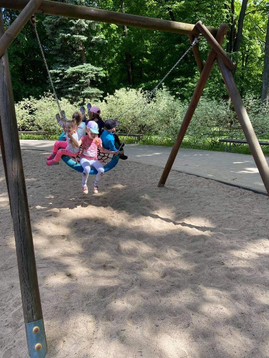 Przedszkolaki z grupy VI wybrały się do parku na piknik z okazji Dnia Dziecka. Z uśmiechem na twarzach, z plecakami pełnymi słodkości wyruszyły w drogę. Była to świetna okazja do aktywnego i miłego spędzenia czasu na wielkim placu zabaw. Wszystkim bardzo się podobało. Co najbardziej...? oczywiście kosztowanie smakołyków ukrytych w plecakach :-) To był bardzo udany dzień, przedszkolaki już nie mogą się doczekać kiedy go powtórzą.
