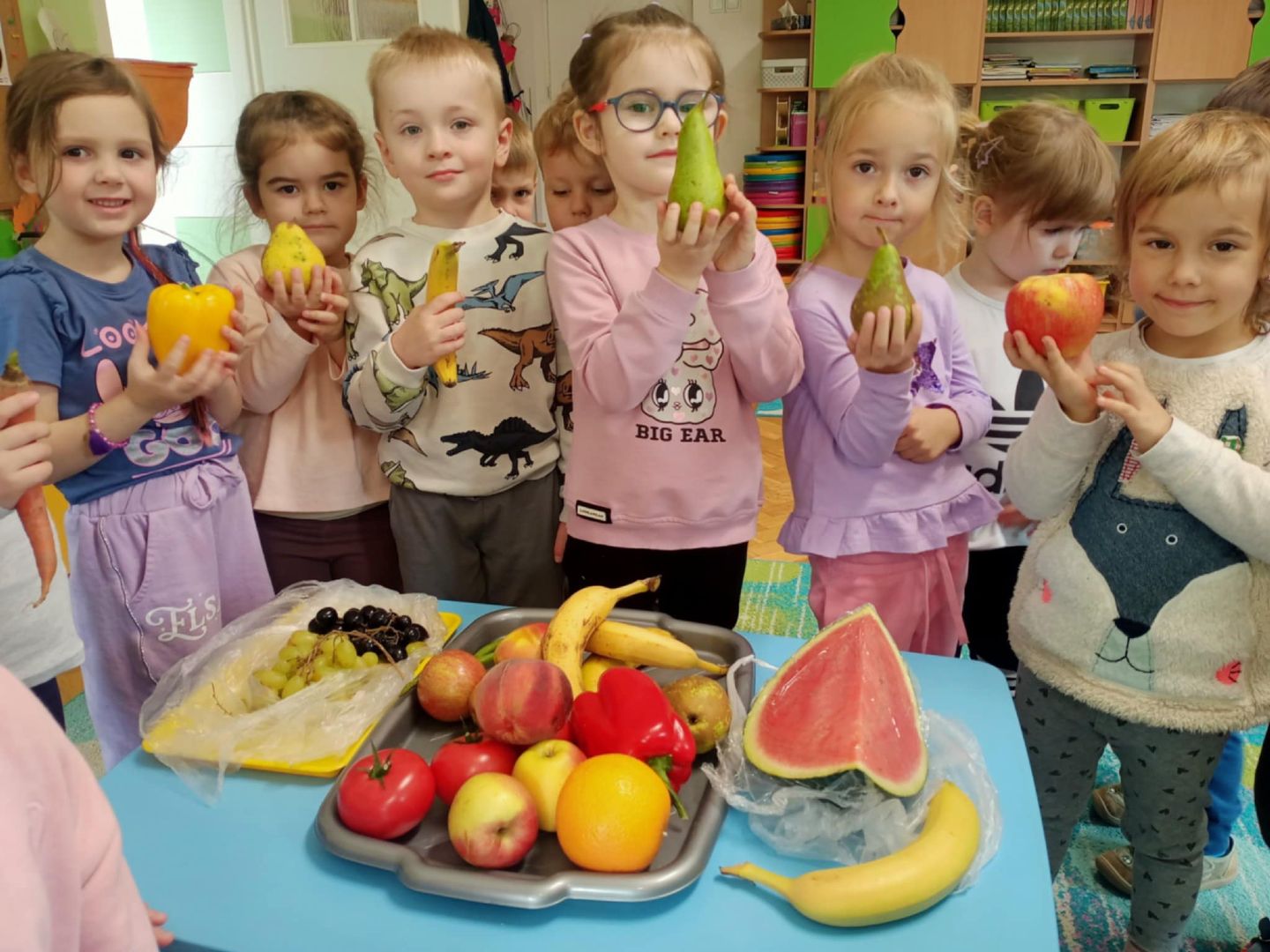 Jesień to wspaniała pora roku pełna barw, smaków i zapachów. W naszym przedszkolu dzieci z wielkim zainteresowaniem uczestniczyły w zajęciach poświęconych warzywom i owocom jesieni. Przedszkolaki rozpoznawały i nazywały różne owoce i warzywa, poznawały ich kształty, kolory oraz zapachy. Dowiedziały się, jak ważne są one dla zdrowia i dlaczego warto je jeść każdego dnia. Podczas zajęć dzieci oglądały i dotykały przyniesione przez siebie warzywa i owoce, segregowały je według koloru i rodzaju, a następnie wykonały piękne prace plastyczne – kolorowe kosze z darami jesieni. Wspólnie ułożyliśmy też wierszyki i piosenki o jabłkach, gruszkach, marchewkach i kapuście. Zwieńczeniem tematu była degustacja sałatek owocowo-warzywnych przygotowanych przez dzieci z pomocą pań. Zajęcia były nie tylko smakowite, ale i pełne radości oraz nauki przez zabawę.