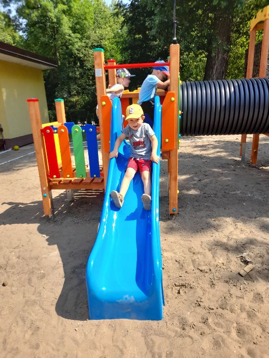 Wreszcie nadszedł długo wyczekiwany dzień - otwarcie nowego placu zabaw. Dzieci od rana dopytywały się czy na pewno wyjdą na podwórko i czy będą mogły pobawić się na nowym sprzęcie :-) Nim to jednak nastąpiło przedszkolaki złożyły przyrzeczenie, że będą dbały i szanowały nowy plac zabaw, będą właściwie z niego korzystać i nie będą go niszczyć. Uroczyste przecięcie taśm odgradzających sprzęt i już! By nie było przepychanie i każdy mógł „przetestować” każdą zjeżdżalnię nastąpiło losowanie kolejności grup, by w zgodzie bawić się na placu. Co to była za radość!!!! Uśmiechy i zadowolone miny dzieci mówią same za siebie.