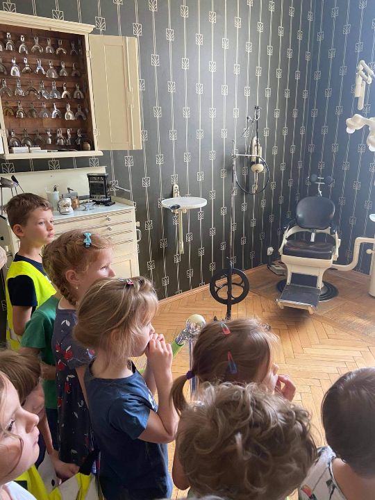 Przedszkolaki z grupy VI wzięły udział w bardzo ciekawych zajęciach edukacyjnych na Uniwersytecie Medycznym w Białymstoku w Muzeum Historii Medycyny i Farmacji. Muzeum mieści się w budynku Pałacu Branickich to dodatkowo miało się wrażenie przeniesienia w czasie o jakieś 100 lat. Przedszkolaki swoją wizytę rozpoczęły od zwiedzania wnętrz starej apteki oraz gabinetów lekarskich - dentysty, okulisty, radiologa i wielu innych. Dzieci poznały sympatycznego Kostka, z którym zrobiły pamiątkowe zdjęcie :-) Po zwiedzaniu przyszedł czas na działanie, dzieci samodzielnie wykonały odlewy gipsowe Pałacu Branickich, które po wyschnięciu mogły zabrać ze sobą do przedszkola. To był swojego rodzaju spacer do przeszłości!