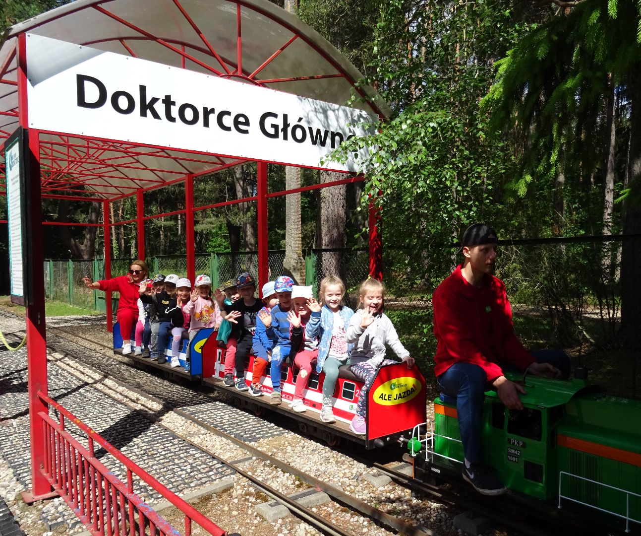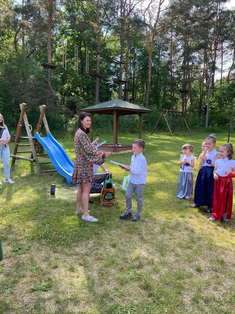 Po przerwie spowodowanej pandemią przedszkolaki wreszcie wyruszyły na swoją pierwszą całodniową wycieczkę. Pogoda jak na zamówienie (choć poprzedniego dnia lało i lało...), humory dobre, nic tylko ruszać w drogę. W Parku Linowym w Doktorcach czekało na dzieci wiele atrakcji...dmuchańce, trampoliny, wielki zamek, strzelnica z piankowymi kulkami i kolejka wąskotorowa, która głośno gwizdała u-u-u mijając kolejne stacje. Jadnak największą atrakcją był podwieszany tor przeszkód, który przedszkolaki pokonywały z uśmiechem. Swe siły dzieci szybo regenerowały na kocykach pałaszując słodkie co nieco spakowane przez rodziców. Pieczone kiełbaski oraz obiad na świeżym powietrzu też stanowił nie lada atrakcję - na podwórku zwykły obiad smakuje inaczej niż w przedszkolu. Po obiedzie kolejna tura zabaw w pięknych okolicznościach przyrody - park położony w lesie zachęcał dzieci do aktywności ruchowej. Tu każdy znalazł coś dla siebie, zarówno maluszki jak i starszaki bawiły się na całego. Zmęczone, może trochę pobrudzone ale na pewno szczęśliwe przedszkolaki wróciły do przedszkola. Niektóre z nadmiaru wrażeń „padły” w autokarze. Oj, będzie co opowiadać po powrocie.....choć trzeba przyznać, nikomu nie chciało się wracać. Zresztą, wystarczy spojrzeć na uśmiechnięte i szczęśliwe miny dzieci, one mówią wszystko. BYŁO WSPANIALE!!!!